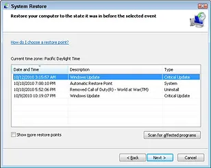 Moving ahead, the user needs to select the restore my computer to an earlier time option